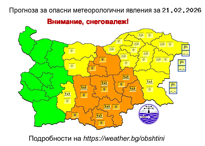 Призовават се гражданите да бъдат внимателни, водачите на моторни превозни средства да се движат със съобразена скорост и повишено внимание, както и да използват автомобили, подготвени за зимни условия. Отговорните институции следят обстановката и са в готовност за предприемане на необходимите действия при усложняване на метеорологичната ситуация.