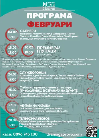 Макар и с по-малко дни, февруари има достатъчно възможности за срещи с театъра, за да предвидите време за това.