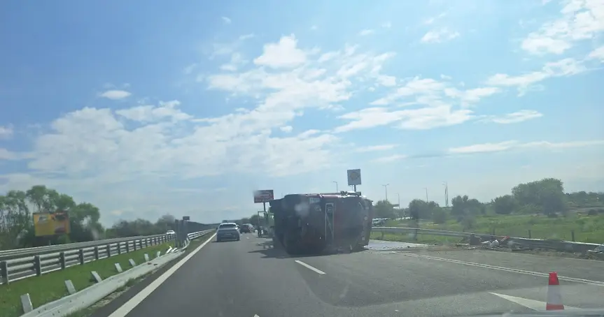 По неофициални данни камионът се е движил с висока скорост, след което се е завъртял и е останал в посока, обратна на движението, съобщават потребители в социалните мрежи.
