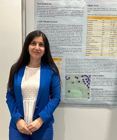 Д-р Преслава Христова участва с постер на тема: Septic arthritis in a child caused by 19А serotype Streptococcus pneumoniae, който бе представен в научна сесия Infectious Diseases. Научната разработка предизвика сериозен интерес от страна на професионалисти, работещи в сферата на инфекциозните болести, молекулярната биология и епидемиологията.