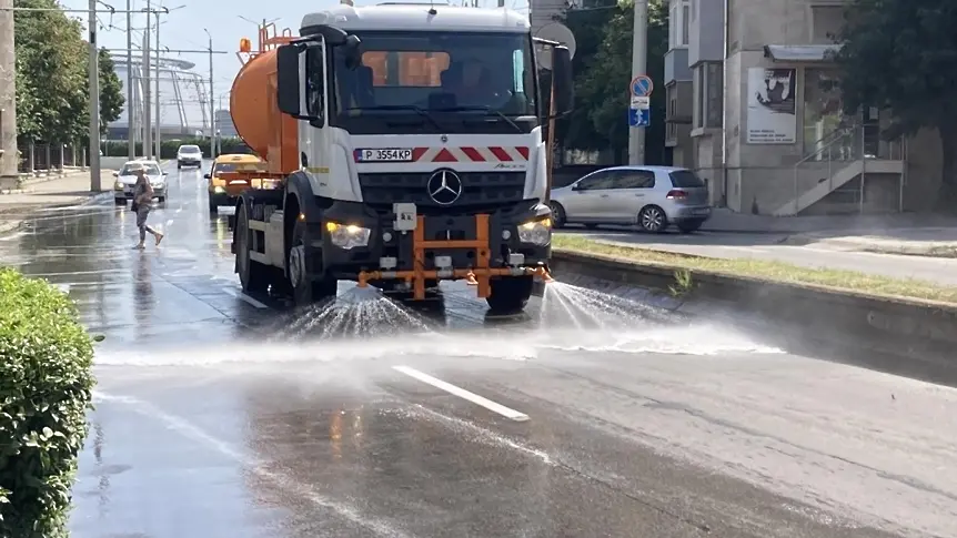 Продължават дейностите по механизирано оросяване на улици и булеварди в Русе заради високите температури, които се очаква и днес да надскочат 42 градуса.