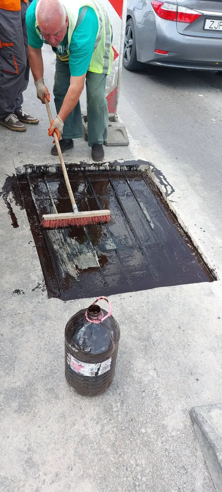 Днес през деня на мястото на пропадане от пътноподдържащата фирма възстановиха бетона в нарушената област от панела. Беше положен и нов асфалт.