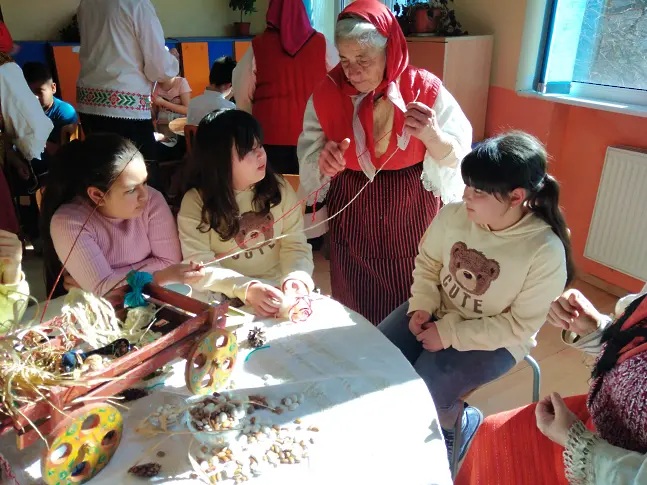 Продължава работата по съвместния ученически проект „Магията на празника ни прави по – добри“. В „Работилницата на Баба Марта“ учениците от 3 е и 4 д клас, членове на клуб „Млади възрожденци“ към ОУ „Св.Св. Кирил и Методий“, град Кюстендил, с ръководители Ирина Вучкова и Румяна Зарева, заедно със своите приятели от фолклорната група при Народното читалище в с. Долно село, с ръководител Миродинка Василева, изработиха красиви мартеници от естествени материали.