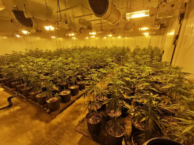 Иззети са 450 саксии с растения от рода на конопа. Във фризер са намерени 10 плика с около 9 килограма марихуана. Открити са още препарати и торове за отглеждането на растенията.