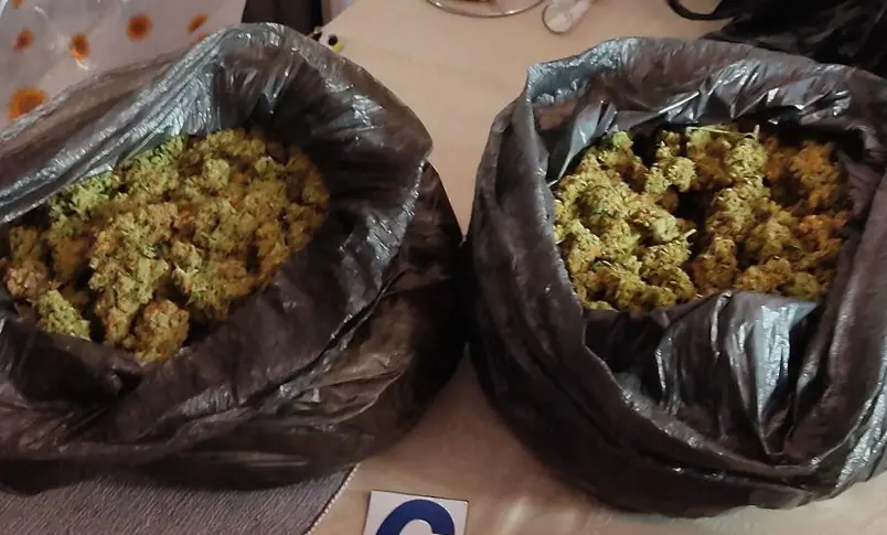 При претърсвания на три адреса и на автомобил са намерени около 3 кг марихуана, 510 бойни патрона за автомат „Калашников“, 6250 евро и 6500 лева, шест мобилни телефона и електронни везни.