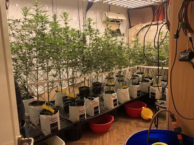При извършеното претърсване на имота криминалисти от Второ РПУ намерили около 50 растения в различен стадий на растеж, професионално оборудване - напоителни системи, вентилатори, лампи, торове и палатки.