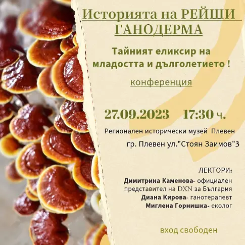 По време на конференцията ще можете да се докоснете до тайните на този еликсир запазил силата си и до днес, да опитате специални храни и напитки, които съдържат екстракт от Ганодерма.