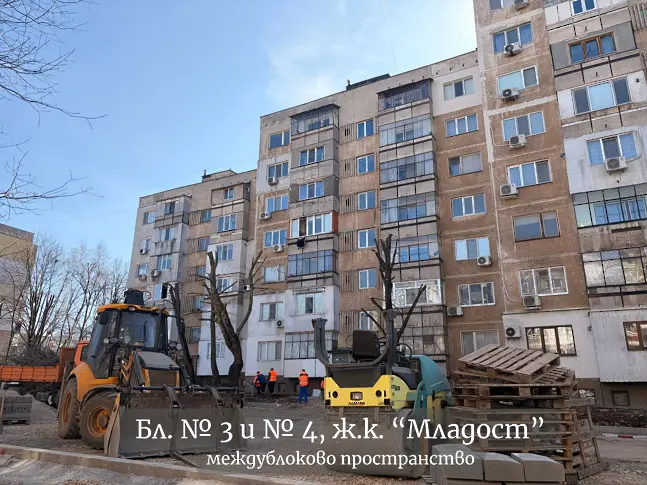 В момента се ремонтират междублоковите пространства при бл. 21 в ж.к. „Дъбника“, бл. 3 и 4 в кв. „Младост“, както и пространството при бл. 3–5 „Вапцаров“.