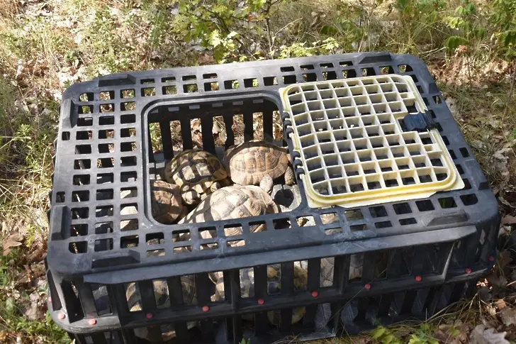 Те са отглеждани незаконно в частен двор на къща. Животните са на различна възраст, с различен размер и са във видимо добро здравословно състояние. На нарушителя е съставен акт за установяване на административно нарушение. Седемте екземпляра от защитения вид са пуснати на свобода в подходящо за вида местообитание, информираха от Министерството на околната среда и водите.