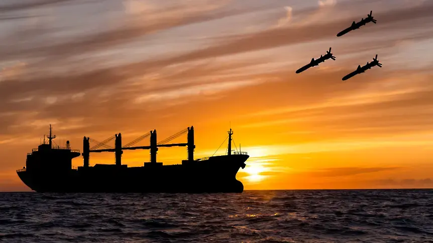 Атаката предизвикала пожар, който бил потушен от екипажа, се посочва в съобщението. По първоначални данни ранени няма.