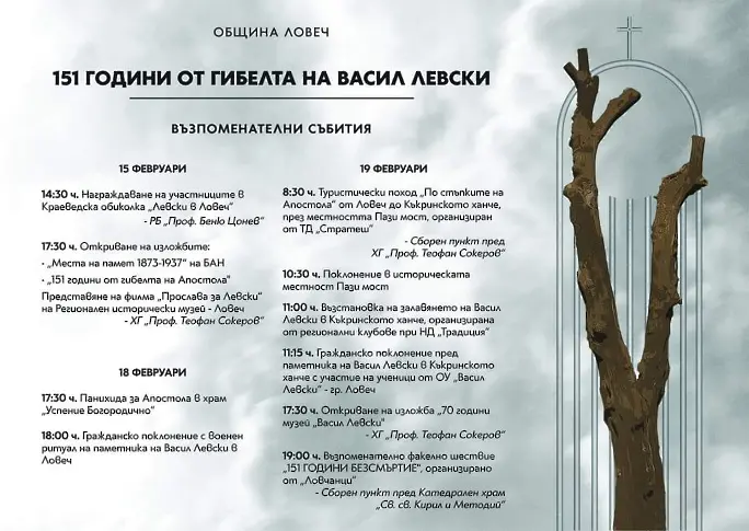 С военен ритуал и гражданско поклонение, на 18 февруари в Ловеч ще бъде почетена паметта на Апостола на свободата. Началото е в 18:00 ч. пред паметника на Васил Левски.