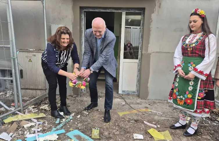 На място пред блок 64 на ул. Първи май символична първа копка бе направена по стара традиция с менче с вода и здравец от зам.кмета Яшо Минков и управителя на Сдружението на собствениците Тоска Стоилова, която благодари на общината за подкрепата и подчерта, че работата вече е започнала и са изключително доволни.