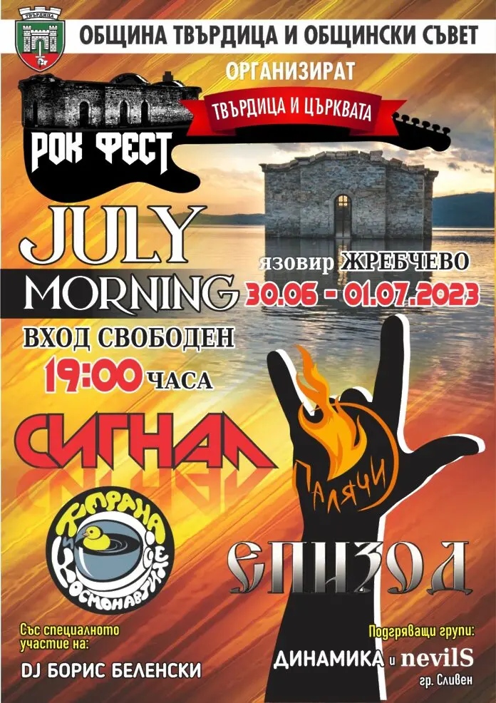 „Джулай морнинг – Твърдица и църквата 2023“, така е наречен тази година традиционният рок фест, който се провежда край „Потопената църква“ и язовир „Жребчево“ за посрещането на първото юлско утро.