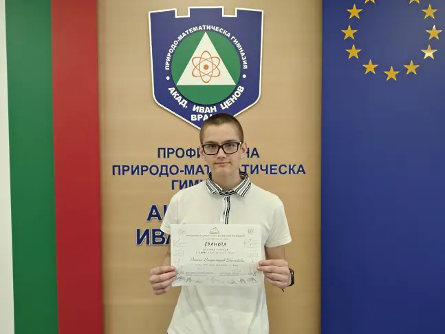Даниел впечатли журито със своите задълбочени знания и умения в областта на физиката, като заслужено получи втора награда. Това е изключително признание за неговия труд и отдаденост към науката.