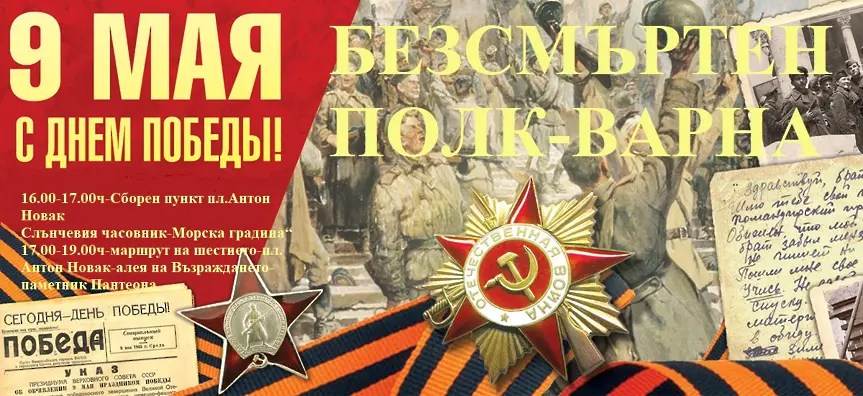 Шествието „Безсмъртен полк” ще се проведе във Варна на 9 май. Сборният пункт е в 17 ч. на входа на Морската градина. Оттам шествието ще продължи по алеята на Възраждането и ще стигне до Пантеона.