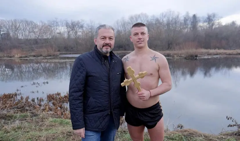 Симеон Спасов извади Богоявленския кръст от осветените ледени води на реката в Севлиево. Той стигна първи до Светинята в надпревара с още единайсет момчета и млади мъже.