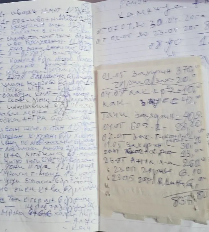 При процесуално-следствените действия са намерени и иззети 4 тефтера с имена на хора и парични суми, 8 кочана от сметки с изписани имена, а под тях продукти и парични суми и бял плик, съдържащ различни видове агитационни материали на определена политическа партия.