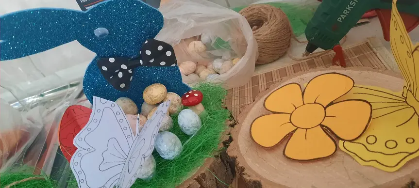 В рамките на ателието, участниците имаха възможност да изработят великденска украса, използвайки разнообразни техники и материали за предстоящите празнични дни.