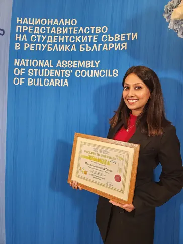Мишел Бърнард Д'Силва, която изучава медицина в МУ-Плевен, e отличена в категория „Чуждестранен студент в България“ на Националния приз "Студент на годината 2022"
