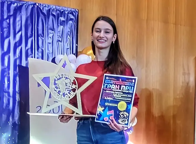 Вчера от град Велико Търново, след изключително успешно представяне, се завърна Димитрина Германова. Възпитаничката на Студио за вокално обучение „ЗОНЕЛИ“ отново показа своята супер класа и грабна най-високото отличие на Националния конкурс за вокално и танцово изкуство „Звезден сблъсък“.