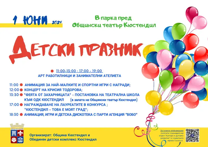 Община Кюстендил кани децата на Кюстендил да празнуват заедно най-слънчевия ден в годината- Денят на детето!