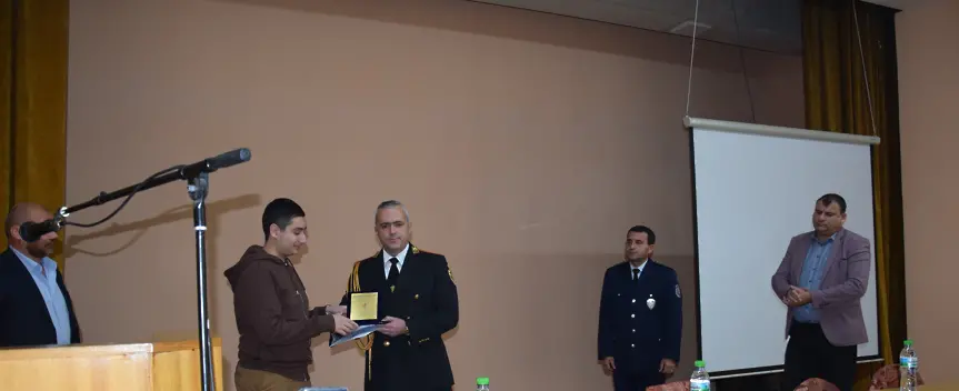 Колеги, уважаеми гости, ще започна поздравленията с нашия подарък за Васко. Благодаря, Васко, благодаря на семейството ти, респект към честността. Бъди здрав, здраве и за семейството ти и бъдете сигурни, че добрите дела провокират добро! С удоволствие ти връчвам този Приз за честност и доброта и Грамота. Поздравления и искрено уважение към семейството ти!