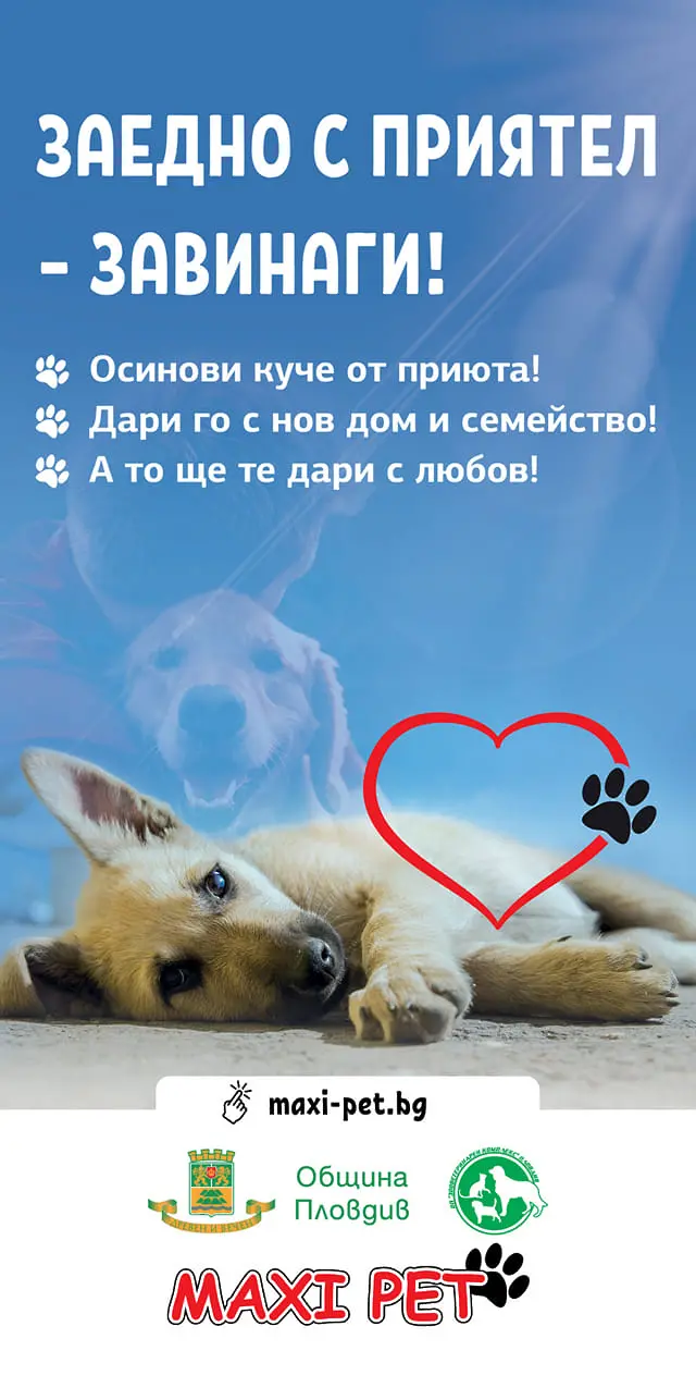 На празника на Пловдив и ден на Съединението на България в града на тепетата стартира кампанията „Заедно с приятел – Завинаги“. Инициативата е на Maxi Pet и Зооветеринарния комплекс, които канят пловдивчани в центъра на Пловдив в подкрепа на каузата за осиновяване на домашен любимец.