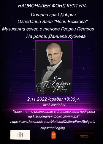 На 2 ноември /сряда/ 2022 г., от 18.30 часа, при вход свободен в Огледална зала „Нели Божкова“ ще се проведе концерт с най-доброто от репертоара на Георги Петров (един от триото "Тримата български тенори"), а на 3 ноември /четвъртък/ той ще зарадва и обитателите на Дома за стари хора в Добрич. На рояла ще му партнира Даниела Хубчева.