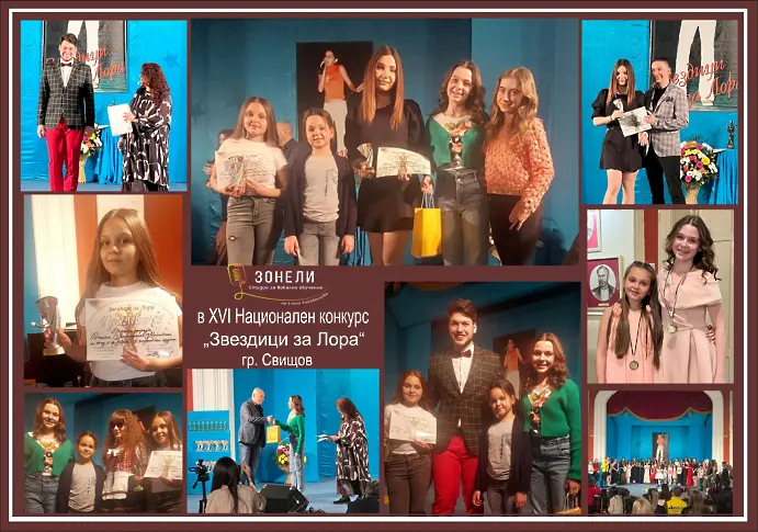 След тригодишно прекъсване заради Ковид пандемията, бе възобновен един от най-елитните и обичани конкурси за млади поп изпълнители в страната - "Звездици за Лора" - гр. Свищов. Шестнадесетото издание се проведе в края на миналата седмица от 7- ми до 9-ти април. Талантите на Студио за вокално обучение "Зонели" - Добрич се представиха успешно в този национален форум. Възпитаниците на вокалния педагог Елена Карабельова успяха да грабнат три отличия. С втора награда бе удостоена Тея Йорданова. Тя се представи в групата най-големите и най-опитните - пета възрастова група (17 - 19 г.). Единадесетокласничката за първи път участва в конкурс и дебютът ѝ е повече от успешен! В трета възрастова група (11 - 13 г.) с 40 участника и в изключително оспорвана конкуренция за челна позиция успя да се пребори Ивайла Михайлова. Тя грабна трета награда. Също в трета възрастова група сред отличените е и Теодора Велинова, на която бе връчена специална награда.