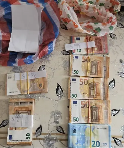 На място е открита тетрадка с имена и числови записки, а в спално помещение са намерени и иззети 12 780 евро, предимно в банкноти с номинал от 50 евро.