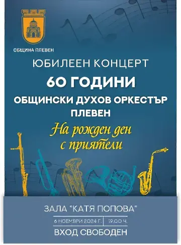 На 6-ти ноември сряда в Плевен ще се състои юбилеен концерт „60 години Общински духов оркестър – Плевен“ с диригент Пламен Марков.