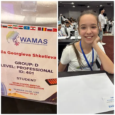"С гордост съобщаваме, че седмокласничката Ния Георгиева Шкетиева от ППМГ „Акад. Иван Ценов“ - Враца, постигна забележителен успех на Световното първенство по ментална аритметика WAMAS 2025", се казва в прессъобщението на ръководството на Математическата гимназия Враца.