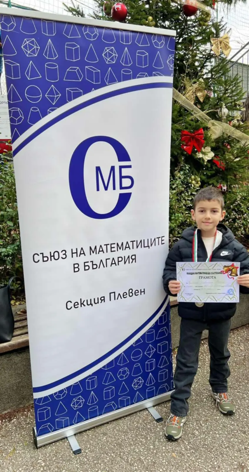 В ХХII общински конкурс за детско творчество на тема „Моето коледно послание – 2024“, организиран от ЦПЛР-Център за работа с деца – Плевен, младият талант Никола Д. Илиев от 1а клас на ИНУ „Христо Ботев“, в първа възрастова група (до 7 години) завоюва първа награда в категория „Рисунка“ и втора награда в категория „Коледна картичка“.