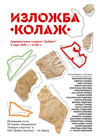 На 9 март 2023 г. (четвъртък), от 17:30 ч., в Художествена галерия – Добрич се открива изложба „Колаж“ на 22-ма ученици от Националното училище по изкуствата ”Добри Христов” – Варна с ръководител Красен Бербенков.