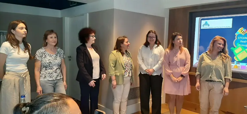 Обучението „STEAM в действие: Решаване на реални проблеми чрез проблемно-базирано обучение“ и „Съвместни класни стаи: Насърчаване на екипната работа с дигитални и изкуствени интелекти инструменти“ беше организирано от Alpha Centre и събра преподаватели от различни европейски градове.