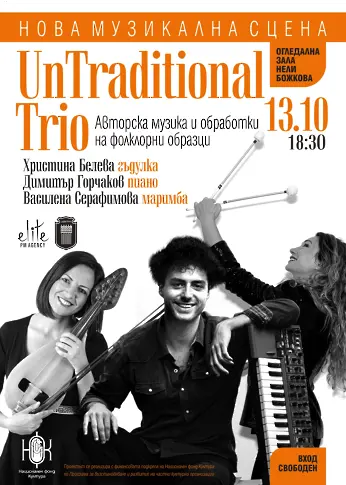 Очакваме една впечатляваща формация, която вече се налага сред меломаните със своя вкус към експеримента - „UnTraditional Trio” в състав: Христина Белева - гъдулка, Василена Серафимова - маримба, и Димитър Горчаков – пиано.