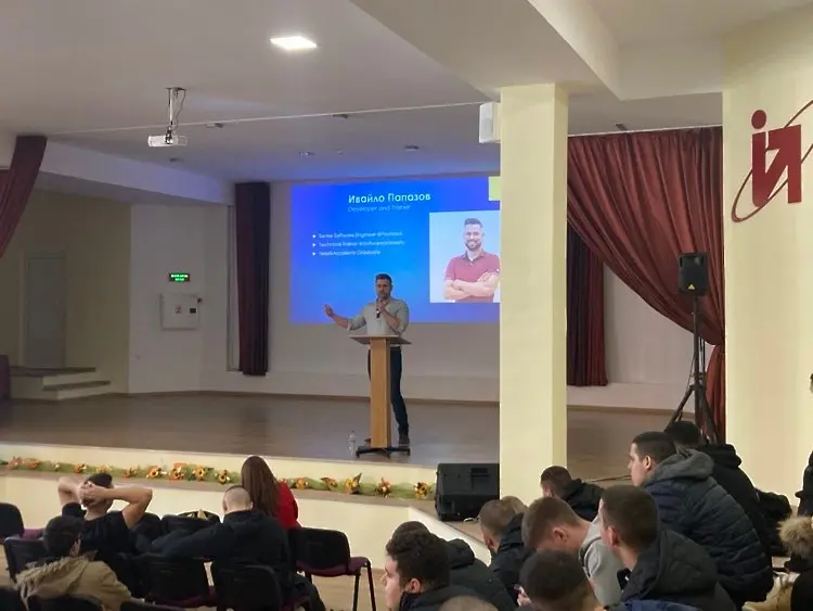 На 17-ти февруари, учениците от 11 и 12 клас от ДФСГ “Интелект” в Плевен присъстваха на мотивираща лекция, изнесена от Ивайло Папазов - старши софтуерен инженер в компания Payhawk и дългогодишен член на екипа на SoftUni.