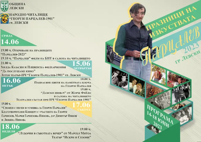 Празниците на изкуствата “Парцалев-2023” ще бъдат официално открити от кмета на Община Левски Любка Александрова ,тази вечер в 19.00 ч . в НЧ “Георги Парцалев-1901” гр. Левски.