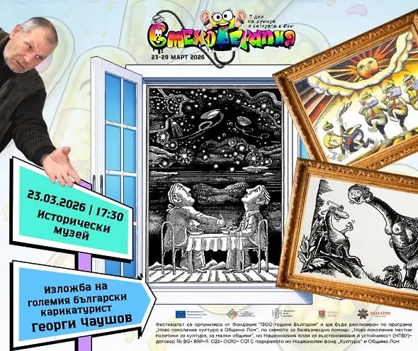 Събитието започва в понеделник, 23.03. 2026 г., от 17:30 ч. в Историческия музей с изложба на големия български карикатурист Георги Чаушов, родом от Лом.