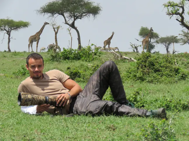 Среща очи в очи на ръка разстояние с лъвица, придружавана от още шест лъва е едно от най-вълнуващите му преживявания, които ще помни винаги. Гонила го е и майка-носорог, защитаваща малкото си.