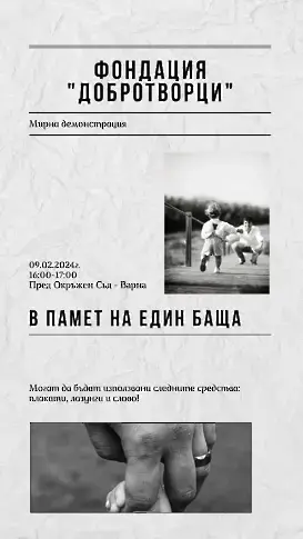 Варненски бащи излизат днес на протест в защита на правата им като родители. От 16.00 часа татковците ще се съберат на мирна демонстрация пред сградата на Окръжния съд във Варна. Събитието ще е в памет на жестоко убития Пейо Пеев.