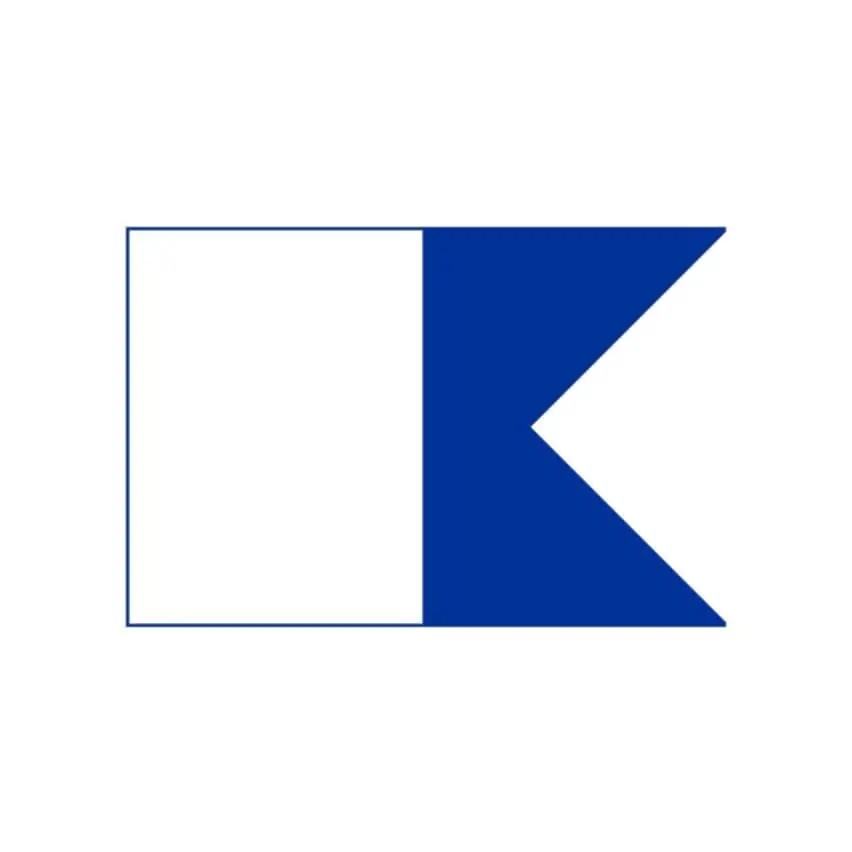 Алфа флаг с международно значение и послание: „Има водолаз под водата; „Стойте далеч от мен и се движете с бавна скорост!“