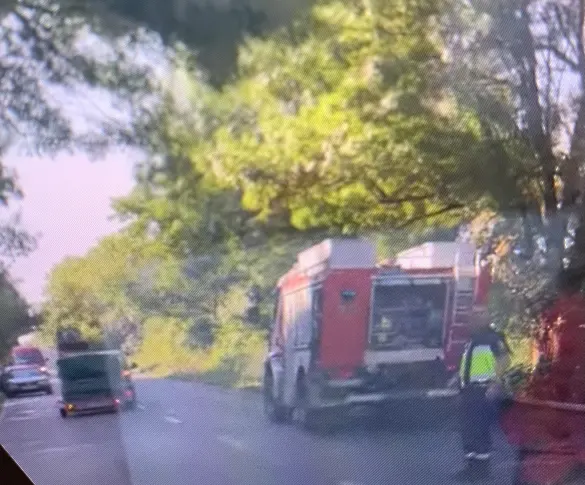 Екип на районната служба „Пожарна безопасност и защита на населението“ - Плевен е загасил огъня. Пътни полицаи регулират движението на моторните превозни средства в участъка.