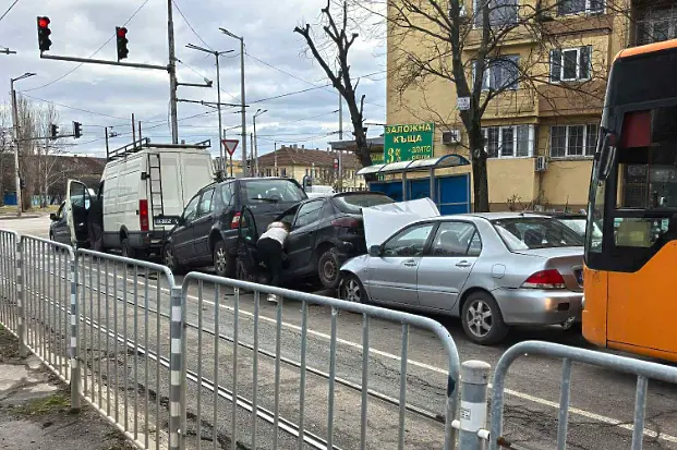 Голяма верижна катастрофа е станала на светофар на столичния булевард „Рожен“ в ж.к. „Свобода“.