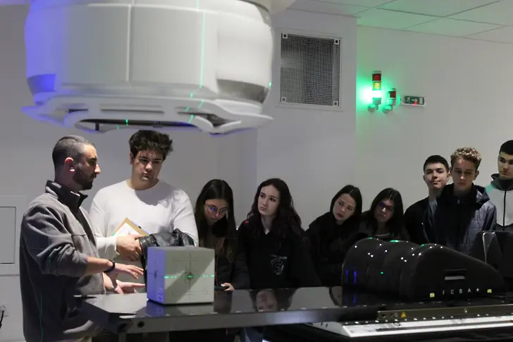 Срещата завърши с посещение на лъчетерапевтичния комплекс на ,Сърце и Мозък’, където учениците и преподавателите имаха възможност да се запознаят отблизо с линейния ускорител, гама ножа, компютърните томографи, специализираните планиращи системи и дозиметрично оборудване. В края на разговорите с гордост беше отбелязано, че повечето медицински физици в Плевен, а и немалко на други места в България и по света, са тръгнали от Математическа гимназия „Гео Милев“, училище с изключително силни и стабилни традиции във физиката.