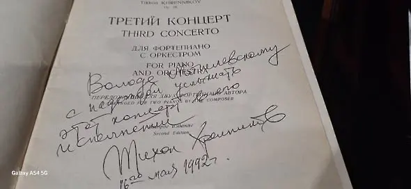През 1992 г- той ми подари нотите за този концерт. Изпълних я на концерт в неговия роден град.