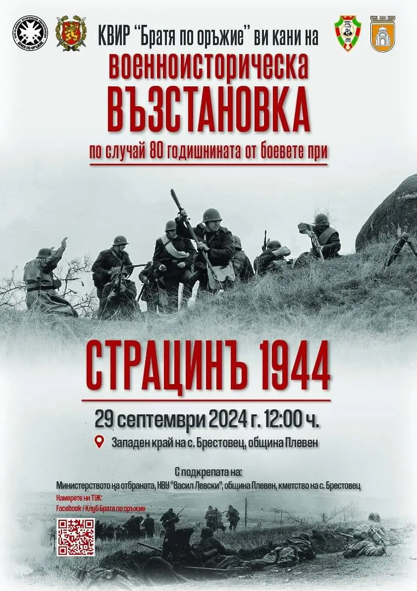 В края на месец септември в плевенското село Брестовец ще се проведе Военно-историческа възстановка "Страцинъ 1944" на КВИР "Братя по оръжие".