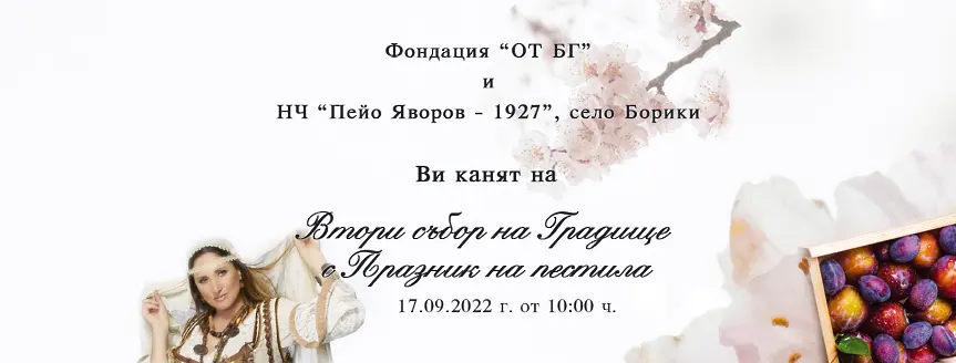 В 10:30 сцената ще се събуди с фолклорна програма от гостуващи читалища, която ще продължи до 12:30 часа. Тя, както и програмата до 17 часа, са организирани от читалище НЧ "Пейо Яворов - 1927" село Борики. Вече 8 години читалището организира празник на пестила - основен поминък на хората в селото в миналото. Добър повод да се видим, почерпим с пестил и извием хоро.