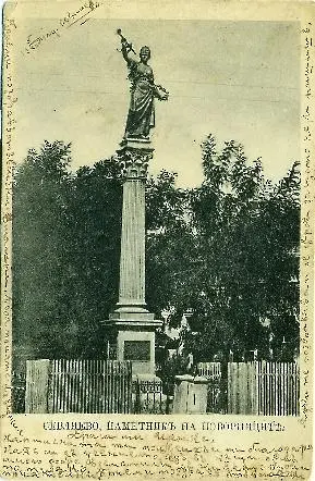 Статуята на паметника е дело на известния флорентински скулптор Арналдо Дзоки. Статуята на млада жена символизира освободената Майка България, която в лявата си ръка държи лавров венец, за да увенчае челата на загиналите за свободата й нейни чеда, а в дясната държи тръба, с която зове за освобождението и обединението на българските земи. Паметникът официално е открит и осветен на 8 септември 1894 година.