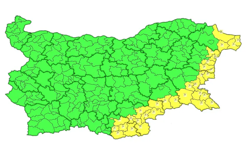 Предупреждението се отнася за общините Варна, Аксаково, Аврен, Бяла и Долни чифлик.
